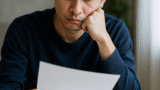 "自己破産後に転職活動で悩む表情の日本人男性"